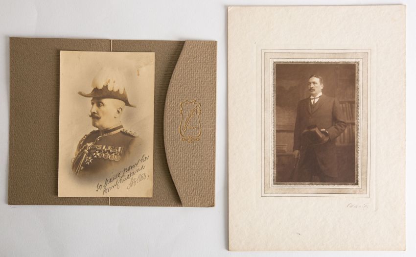 The remaining personal effects of Sir Samuel Benfield Steele (Medonet, Canada 1848- London 1919): two photographs circa 1906 of Col. S.B. Steele in morning coat, by Elliot and Fry, London and signed photograph ' to Maye from her husband S.B.Steele', in full dress uniform (3).