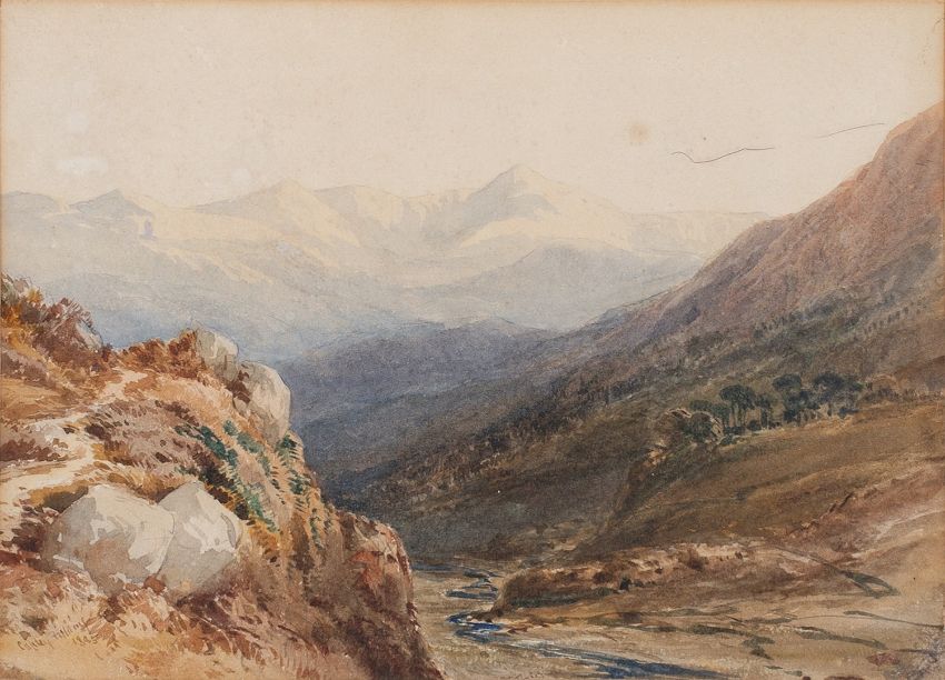 Copley Fielding (British, 1787-1855)A mountainous landscape with a rocky outcrop in the foregroundWatercolour21.5 x 29cmSigned and dated 1805 lower left