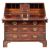 A George II mahogany bureau; the sloping hinged fall enclosing a fitted interior with small drawers and pigeon holes about a central enclosed cupboard, flanked by upright pilaster concealed compartments, containing four long graduated drawers below, on bracket feet; 102cm high, 103cm wide, 53cm deep