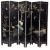 An Oriental painted and lacquered wood six fold screen, early 20th century; decorated with birds on boughs in a landscape on black to one side, and on a silvered ground to the other; each leaf 183cm high, 40cm wide; (hinges damaged)