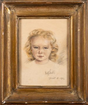 Continental School Portrait of a young girl Charcoal and crayon on paper 22.5 x 16.5cm Signed lower right, dated 1952