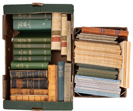 DEVON. Report and Transactions of the Devonshire Association, 18 vols, broken run dates between 1863 and 1967, with general index for 1862-1928 and 1862-1948, variously bound, some ex-library, 8vo; Journal of the Torquay Natural History Society, 13 vols, 1910 (2), 1912-1922 and Transactions of the Torquay Natural History Society, 13 vols, 1922-1933, 1936/5 (2), 1946/7, orig. wraps, 8vo, with 14 related publications; Devon Archaeological Society Proceedings, 14 vols, various dates between 1949 and 1989, 1 bound remainder orig. wraps, 8vo. (61)