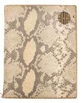 JEWELLERY TRADE CATALOGUE. Léon Devos Joaillier, Bruxelles, Ostende, Paris. Catalogue of Art Deco jewellery, with calendar for 1929 [1928], five full page colour illustrations, faux snakeskin covered binding, 4to