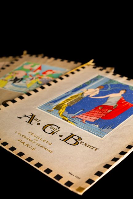 FASHION. ART GOÛT BEAUTÉ, Feuillets De L'Élégance Féminine. 17 issues 1922-23, comprising: Jan 1922, April 1922 to Oct 1922, Noel 1922, Feb 1923 to Oct 1923, lavishly illustrated throughout with pochoirs, featuring designs from Colette, J. Dory, Beer, Vitrotto, Marioton and others, the frontispieces with printed fabric designs, with silk cord to binding to the sides, foxing to some covers, interiors fine, (18)