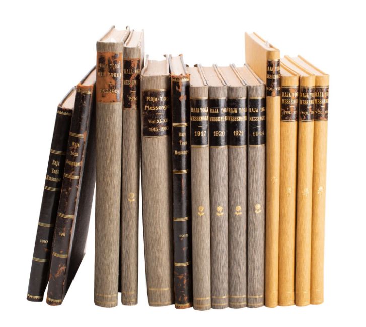 [SPIRITUALISM & OCCULT]. Raja Yoga Messenger, a broken run of 27 vols. from Christmas 1905 (vol. II, no. I) to November 1925 (vol. XXI, no. 6), International Theosophical Headquarters, Point Loma, California, edited by Katherine Tingley, various sizes and bindings; THE THEOSOPHICAL FORUM, 5 vols., 1930s; THE NEW WAY, 4 vols, 1913-5; and PROCEEDINGS OF FOUR CONFERENCES OF PARAPSYCHOLOGICAL STUDIES, New York 1957 (37)