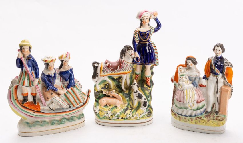 Three Staffordshire figure groups.