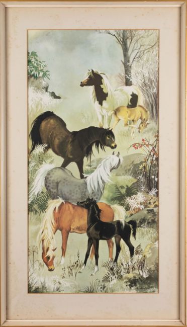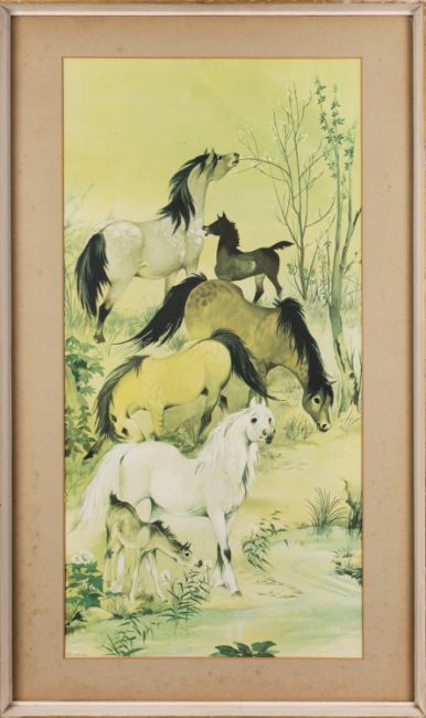 Chinese School (20th Century) Ponies in landscape Two colour prints Each 70 x 35cm