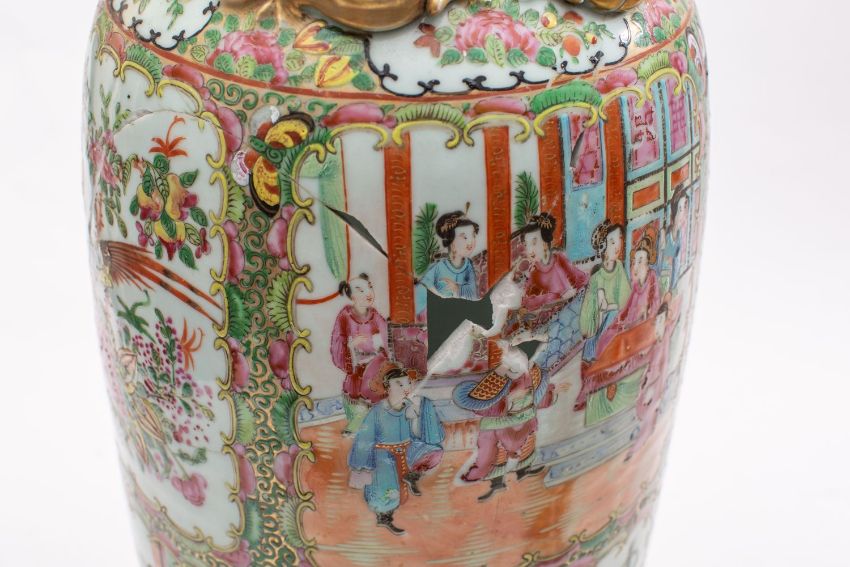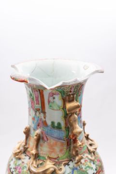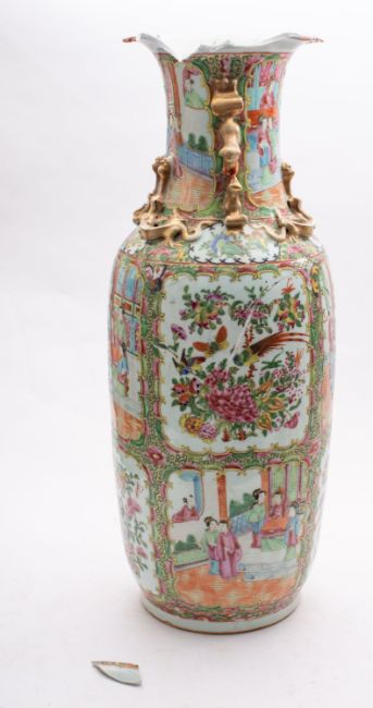 A Chinese Canton famille rose baluster vase (extensively damaged).