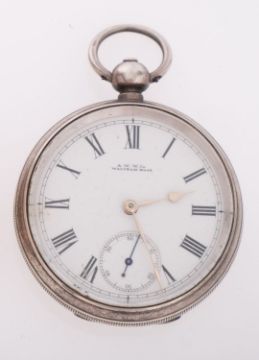 Waltham Watch Co. a silver open-faced pocket watch the dial with black Roman numerals, a subsidiary seconds dial and signed A.W.W.Co. Waltham, Mass, with the case hallmarked for 9ct gold, Birmingham 1891, along with the initials A.B. for Alfred Bedford, the Waltham manager at Holborn Circus in London, the movement stamped Am. Watch Co., Waltham, Mass, 4749950, diameter 48mm total gross weight 105.1gms.