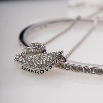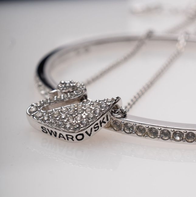 Swarovski crystal set bangle, swan pendant and earrings.