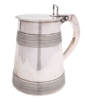 A George III silver tankard by William Holmes & Nicholas Dumee, London 1774, the cover with engraved arms, Butler of Kirkland quartered with Fleetwood, gilt interior, banded body and personalised inscription to the base 'From the Legacy of Hugh Dobie, to Alexr Butler Esqre. He lived at Kirkland near Sixty Years and died there 16th of April 1775 in the Eighty Sixth Year of his Age', 20cm high, 1150g (37oz)Butler of Kirkland Hall, Chruchtown, Lancaster. Alexander (1683-1767), last direct descendant, bequeathed his estate to his great nephew. The Fleetwood Baronetcy, of Caldwich in the County of Stafford, was created in the Baronetage of England by James I on 19 June 1611 for Richard Fleetwood, a direct descendant of William Fleetwood of Hesketh, Lancashire. He was High Sheriff of Staffordshire in 1614 and built the Grade I listed Wootton Lodge at Ellastone. The title became extinct on the death of the sixth Baronet in 1780.
