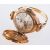 A Rotary watch ring, a 9ct yellow gold ring with a mechanical rotary watch face, hidden underneath a hinged flower shaped cover, raised engraved pattern on shoulders, marked 9, 375, makers mark SD. size L, total gross weight 8.7grams.