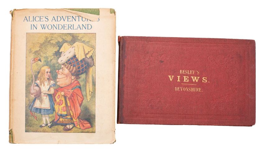 BESLEY'S Views. Devonshire, 29 vignette steel engraved plates, loose in original cloth, oblong 8vo, circa 1850, with... an edition of Alice in Wonderland. (2)