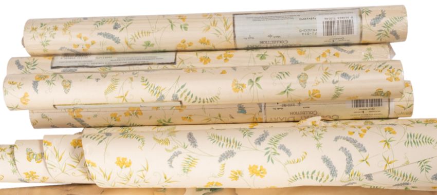 A quantity of Sanderson part used and unused rolls of wallpaper.