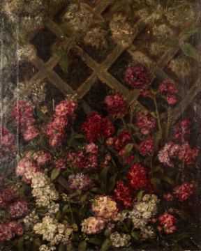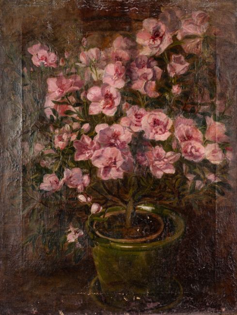 British School, early 20th Century - two still life paintings-Azalias in a green planter -Oil on canvas (unframed) -60 x 46cm -Together with another similar (2)
