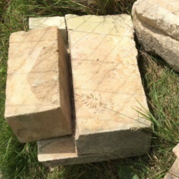 The remaining blocks, approximately 10 pieces, Doulting stone. Note: DRESSED BLOCKS, PREPARED FOR THE CLOISTER GALLERY OF 2024 BUT NOT INCLUDED IN THE BUILDING Most in Doulting stone; a few blocks of oolitic limestone from Marnhull, north Dorset