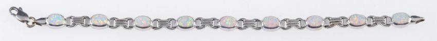 An opal bracelet and matching pendant, the bracelet is set with nine oval opal cabochons, marked 14k, length 17.0cm, the bracelet has been shortened & the removed link has been made into a matching pendant which is set with an opal cabochon, marked 14k, length 2.30cm, total gross weight 16.4grams, comes with International Guarantee certificate.