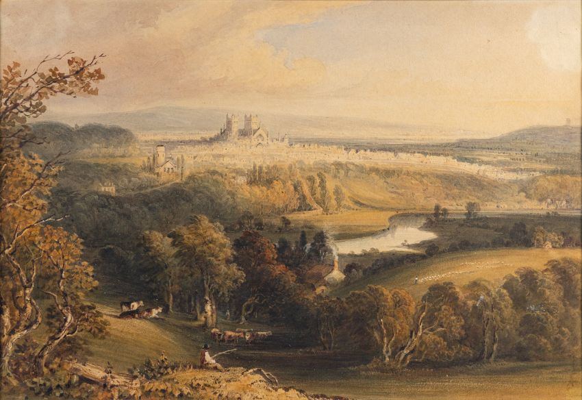 British School. 19th Century -Exeter from Exwick Hill -Watercolour -24 x 35cm -Together with another watercolour of Stoke by a different hand and a print of Great Fulford (3)