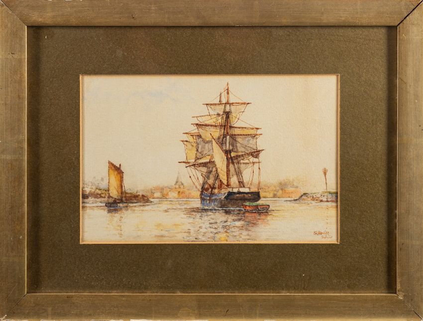 Frederick J. Aldridge (British, 1850-1933)Returning to portWatercolour15 x 23cmSigned lower right