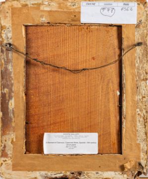 Spanish Colonial School, 19th Century -St. Dominic holding up the Lateran Church -Oil on panel, parcel gilt -21.5 x 15cm