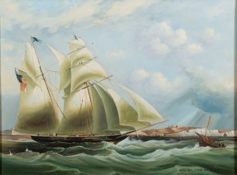 William John Huggins (British, 1781-1845)Shipping off DoverOil on canvas29.5 x 39cmSigned lower right