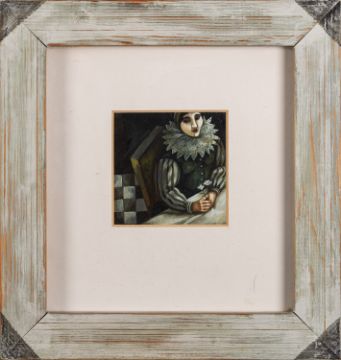*Irene Jones (British b. 1938) -Grey Fairy - Pink Fairy - Elizabethan Girl -Three watercolours -The two larger 8 x 8cm - 24 x 23cm framed -Each signed and titled to the backing (3)