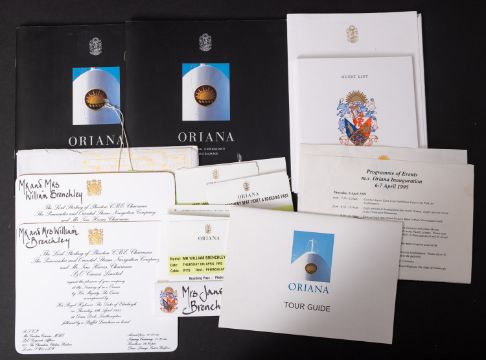 A collection of ephemera from the naming of the P&O liner MV' 'Oriana', Thursday 6th April , 1995, comprising invitation, programmes, menus, tickets and maps etc, together in a 'P&O' bag.