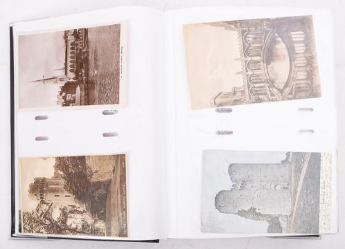 Postcard album; mostly British topographical, seaside towns, castles, some comic, black & white and tinted photographic and others various, approx. 200.