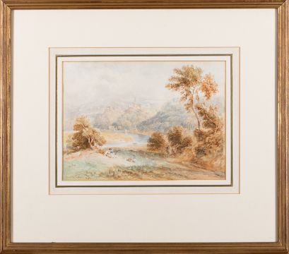 David Cox (British,1783-1859) - Distant view of Goodrich Castle above the river Wye - Watercolour - 16.5 x 22.5cm - Signed lower left and dated 1849. Provenance; Abbey Antiques and Arts, Hemel Hempstead.