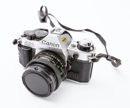 A Canon AE-1 Program 35mm SLR camera: fitted with Canon FD 50mm 1:1.8 lens