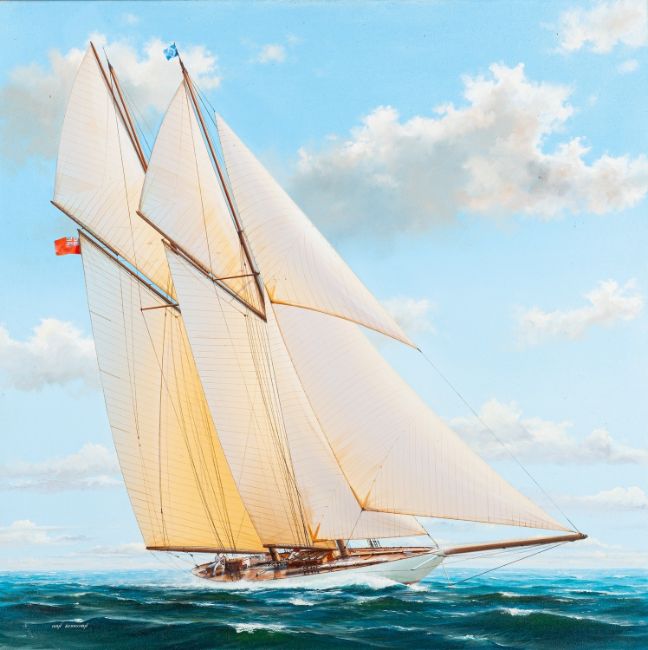 Ivan Berryman (British 1958-) 'The Meteor. Vintage racing schooner' oil on canvas, signed lower right, 60 x 60cm.