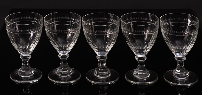 A set of five glass rummers in the late Georgian manner, 14cm.