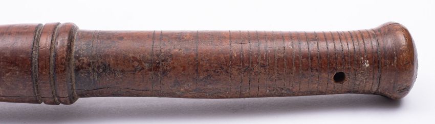 A George III turned hardwood cudgel, early 19th century; with variously knopped finial, shaft and handle; 45cm long
