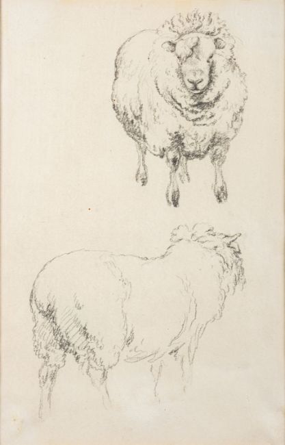 Robert Hills (British, 1769-1844) -Studies of Sheep - Pencil -22 x14.5cm -Provenance; Mrs Lavinia Garle. Thomas Agnew & Sons, London.