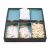 An Oriental lacquered wood box containing a collection of engraved mother of pearl and shell counters, box 25cm.