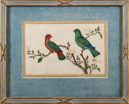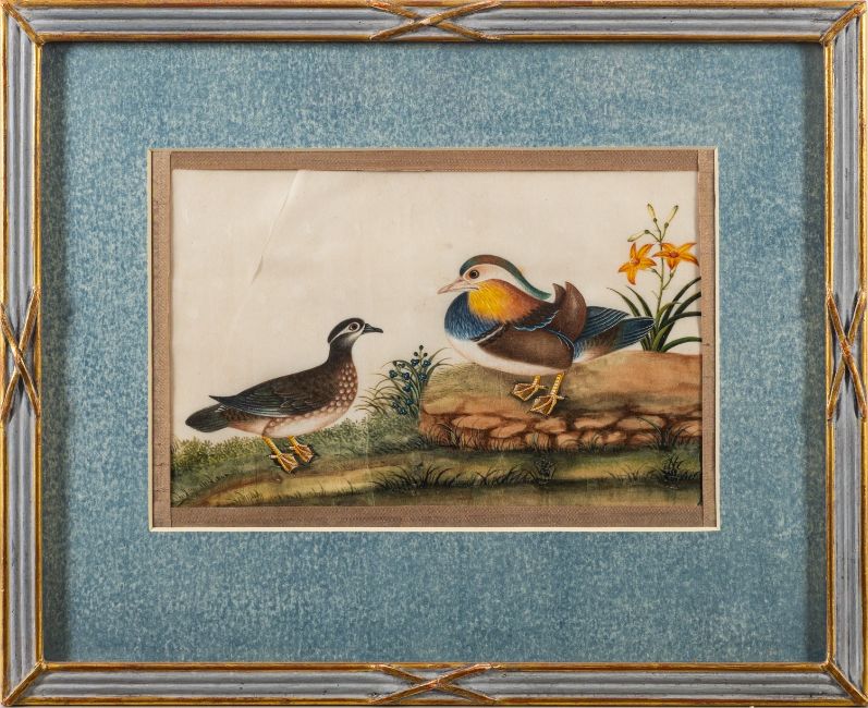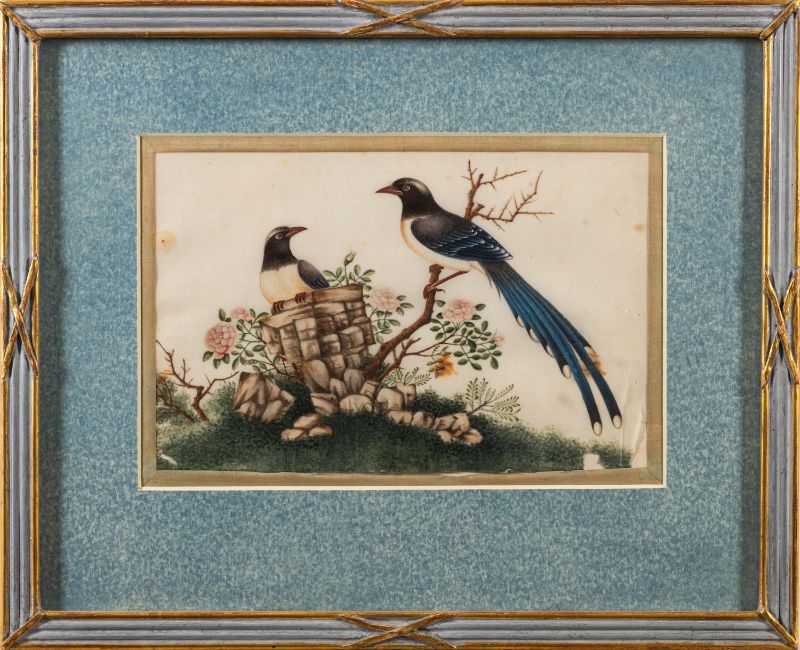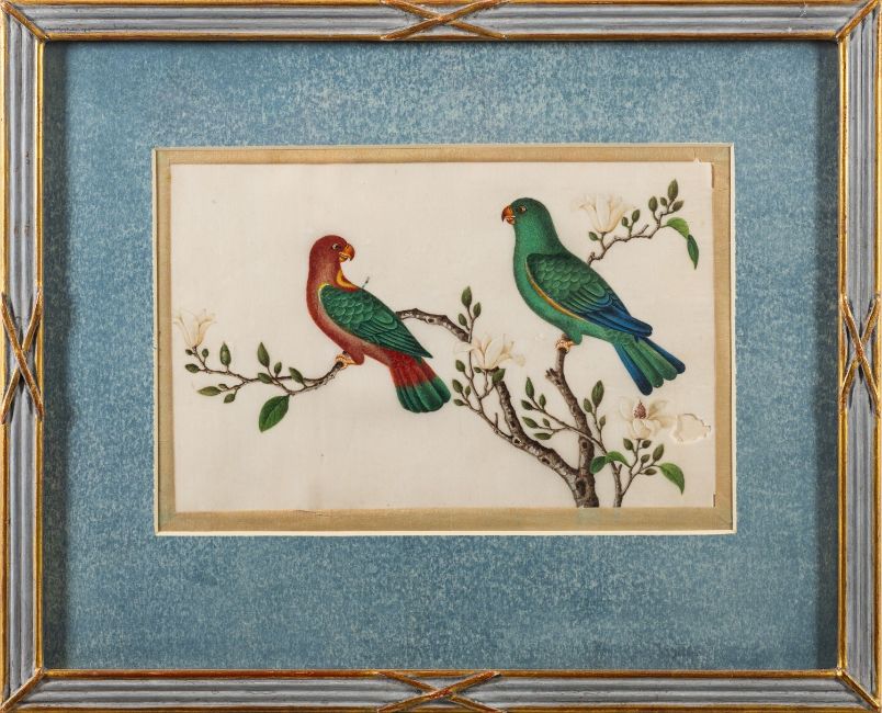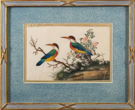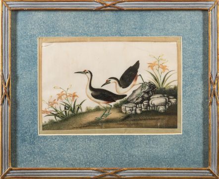 A set of six Chinese pith paper paintings of exotic birds Qing Dynasty, 16 x 25cm [some damage] framed and glazed; together with a limited edition woodblock print by Yoshiharu Kimura and one other [6].
