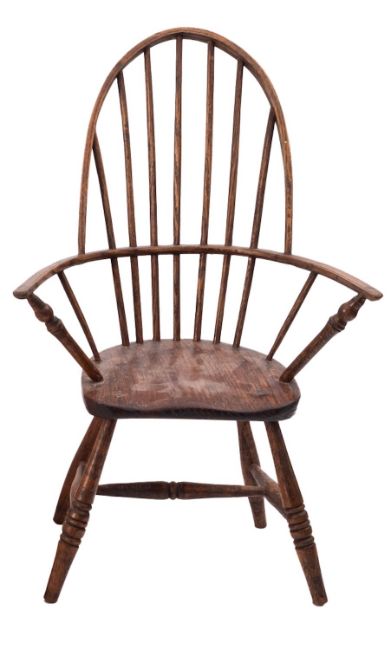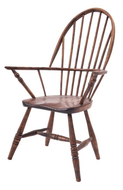 A miniature Victorian beech and elm spindle back Windsor elbow chair, possibly an apprentice piece, second half 19th century; with lancet arched back and adzed seat, raised on turned stretched legs; 44cm high, 28cm wide