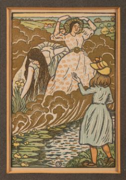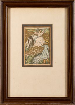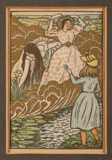 Lucien Pissarro (French, 1863-1944) -'In the Field' -Colour Woodcut -12 x 8cm -Lucien Pissarro created 12 illustrations, five of which were in colour, for Margaret Rust's 'The Queen of the Fishes' in 1894.