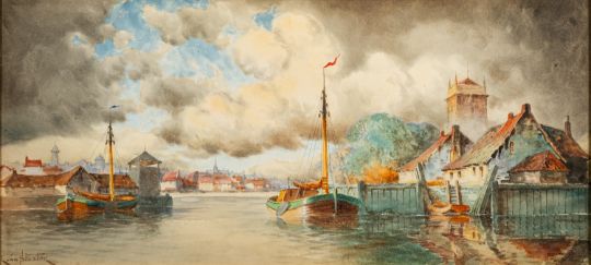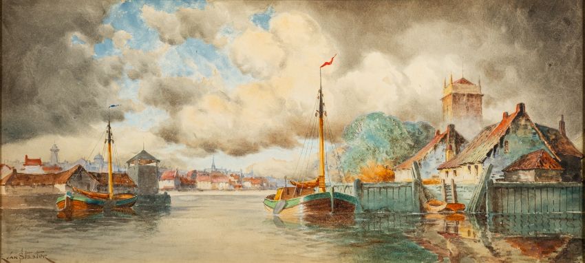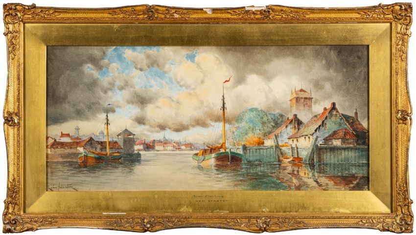 Louis Van Staaten (Dutch, fl.1900-1925) -Near Flushing -Watercolour -29 x 64cm - 46 x 81cm framed -Signed lower left