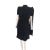 A group of three vintage dresses, including an early 1970s Laura Ashley maxi dress with a high neck and shirred waistline (approx UK size 10), a 1970s Gunne Sox Burgundy dress with small white flowers design, and a Selita Modes black wool crepe day dress. (3)