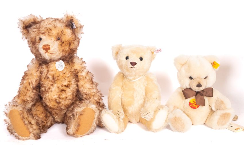 A group of three boxed Steiff bears, including Anna the Friendship Bear 30cm, Petsy 26cm, and Teddybear (1926 replica) 43cm. (3)