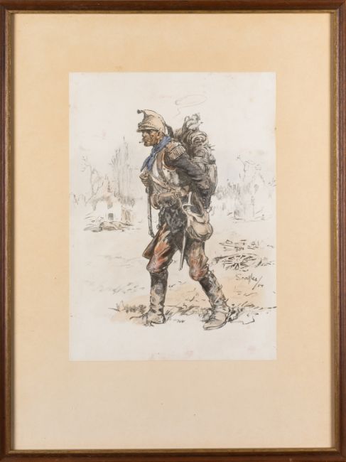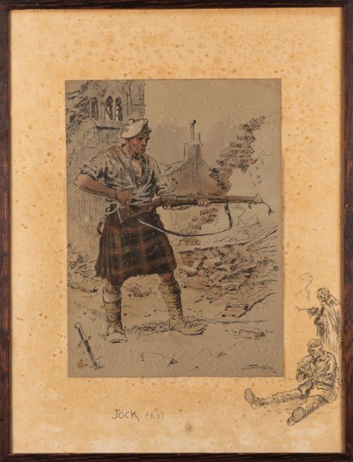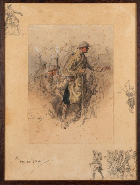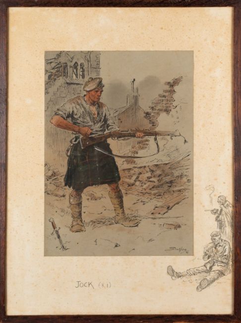 Charles 'Snaffles' Johnson Payne (British,1884-1967) A Heilan Lad, and Jock (K.I) ( x 2 ) All 43 x 32cmwith snaffle bits blindstamp, printed and hand colouredand another of a French Soldier (4)