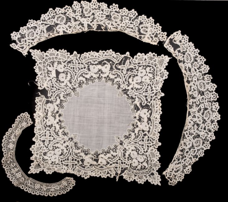 A collection of various sections of English and European lace, 19th century and later, comprising collars, cuffs and trim including a length of floral border etc.
