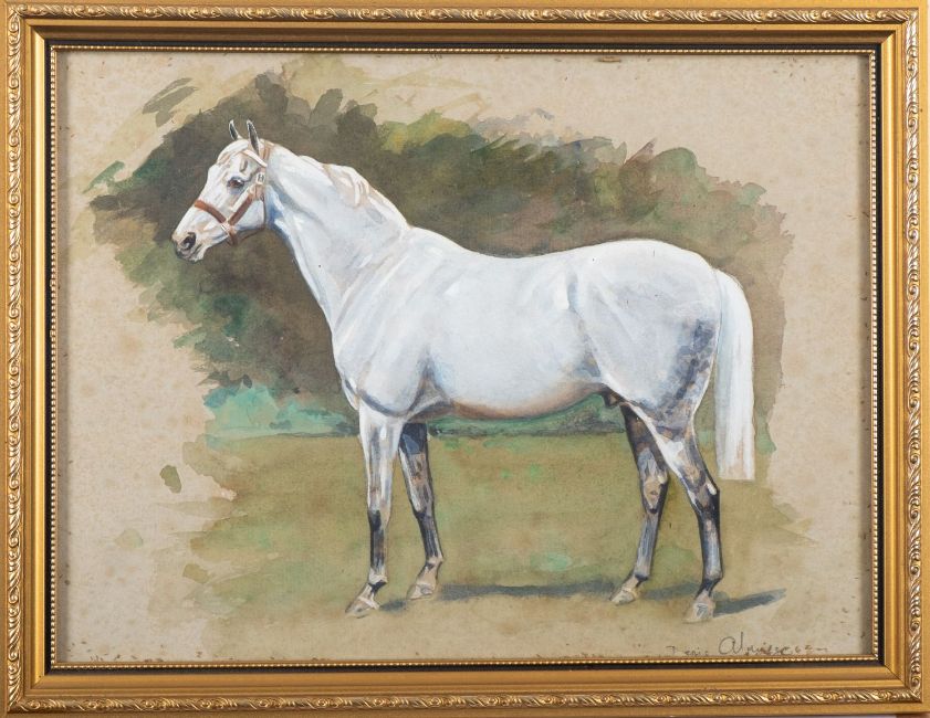 Denis Aldridge (British, 1898-1985)Study of a standing grey horseWatercolour and gouache21.5 x 29cmSigned lower right