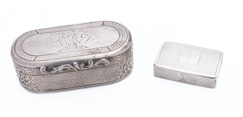 A Victorian silver snuff box by George Unite, Birmingham 1864, of rounded rectangular form, with a modern silver snuff box Birmingham 1987, 72gms. (2.2ozs.), gross, (2)