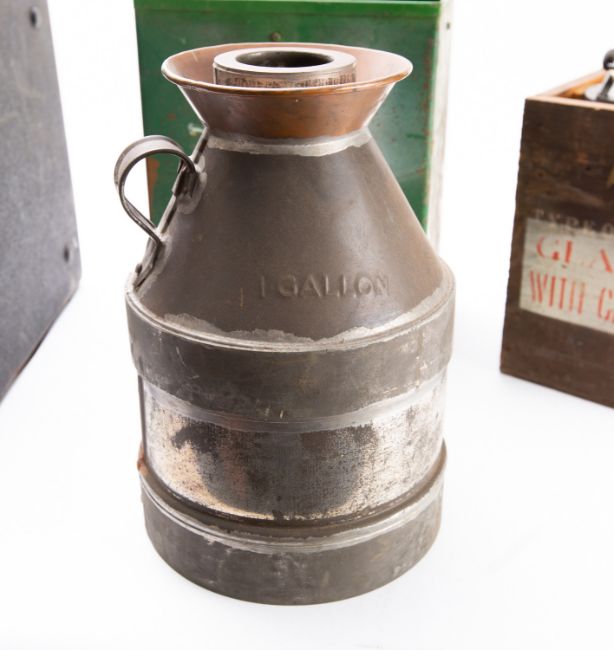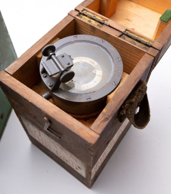 A cased Type 06 compass, together with a One gallon measure and a cased Empire typewriter (3)