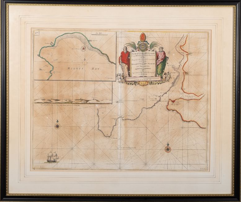 Collins, Capt. Grenville. 'Fowey and Mounts Bay' , no date with illuminated title and topographical vignette, framed and glazed, 44.5x56cm