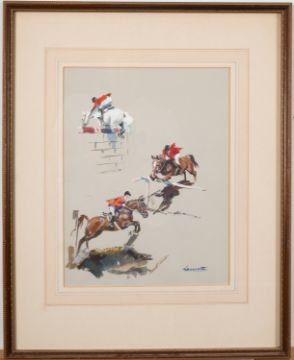 Gabriel Chefson, 'Lamotte' (French, 1920-2005) - Sporting and other scenes - Three gouaches and watercolours - Each approximately 32 x 24cm - Each signed (3)