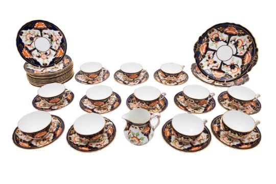 A Royal Crown Derby porcelain part tea service, early 20th century decorated in Imari pattern no.8453, comprising twelve cups and saucers, twelve plates, two larger dishes and a milk jug [39].