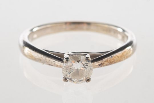 A 9ct white gold diamond solitaire ring, set with a brilliant-cut diamond, diamond approx. 0.33 carat, UK import mark, size I, 2.1grams.